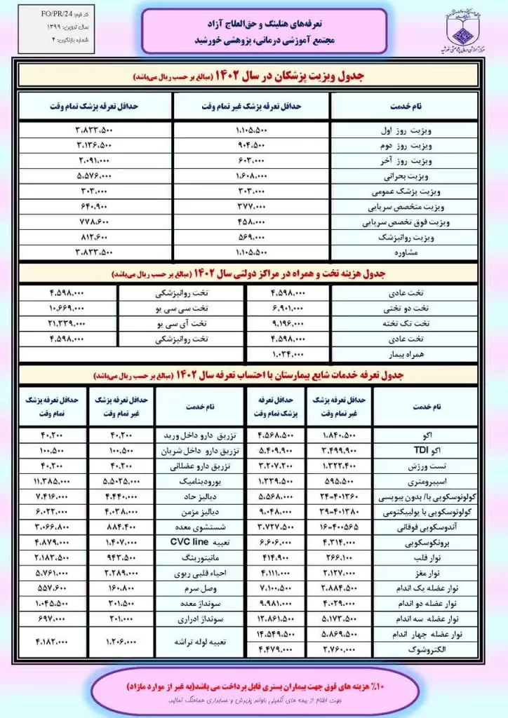 | تاریخ شروع | تعرفهها از روز سهشنبه آغاز میشوند. |